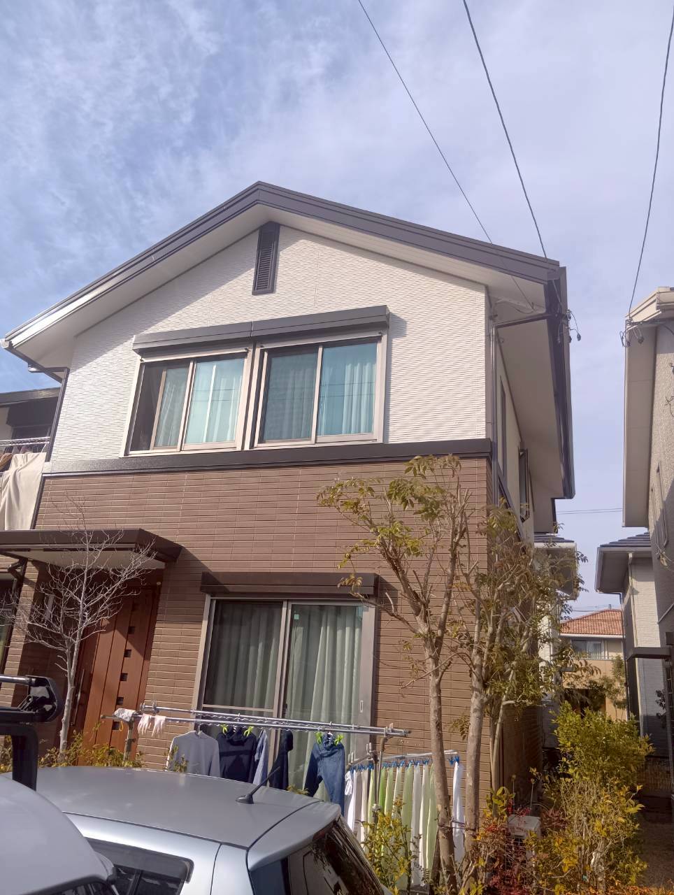 施工後 施工前 ご近所で数件ご縁をいただき、仕上がりを気に入っていただき、この度ご縁をいただきました。 色の雰囲気がガラッとかわり綺麗になったと喜んでいただきました。