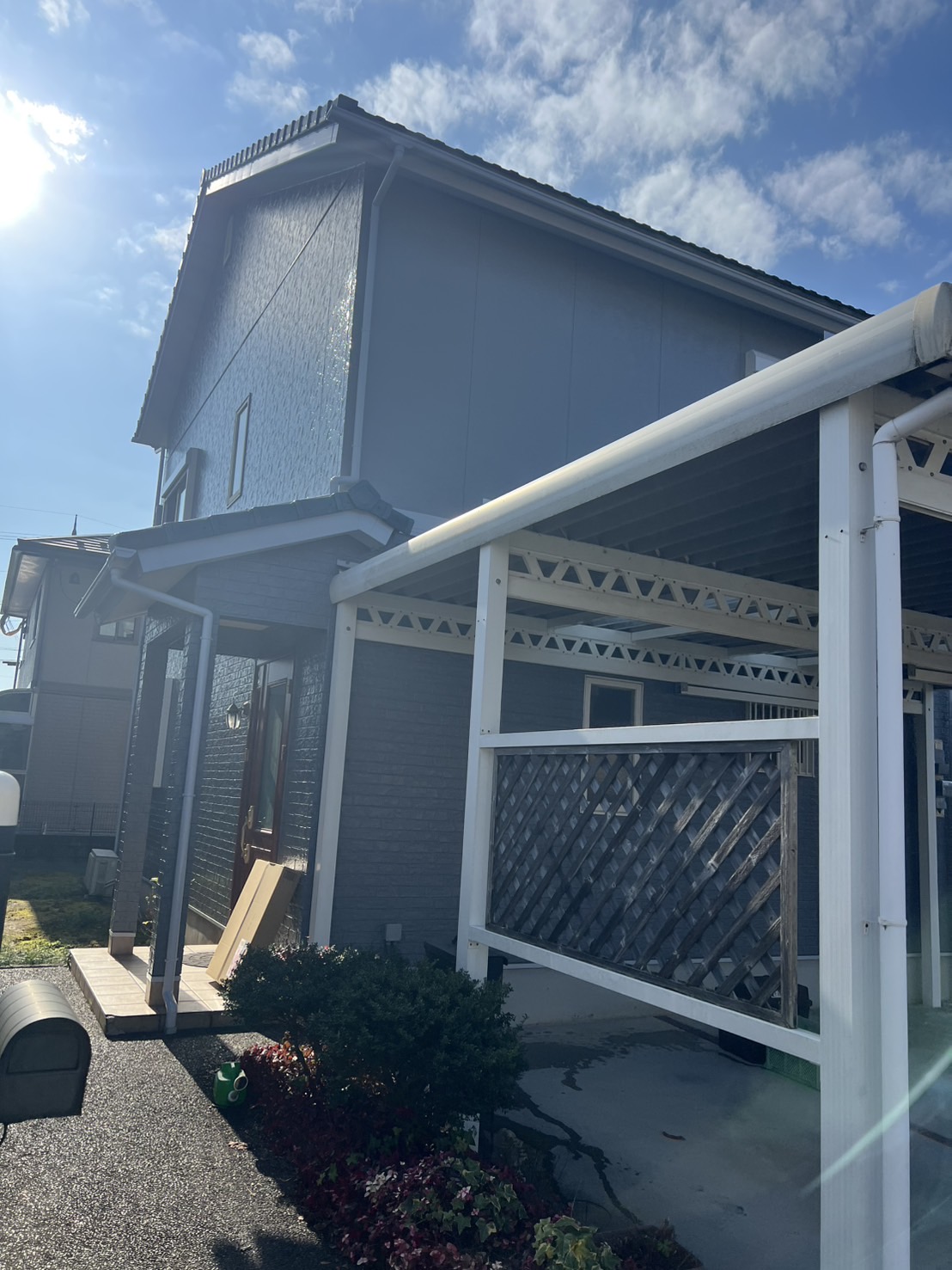 湖南市 S様邸にて外壁屋根塗装工事が完了いたしました。 施工にお時間がかかりご迷惑おかけしました。 元々の色とは違うイメージで仕上げさせて頂きました。色褪せていた外壁が綺麗になったと喜んで頂きました。